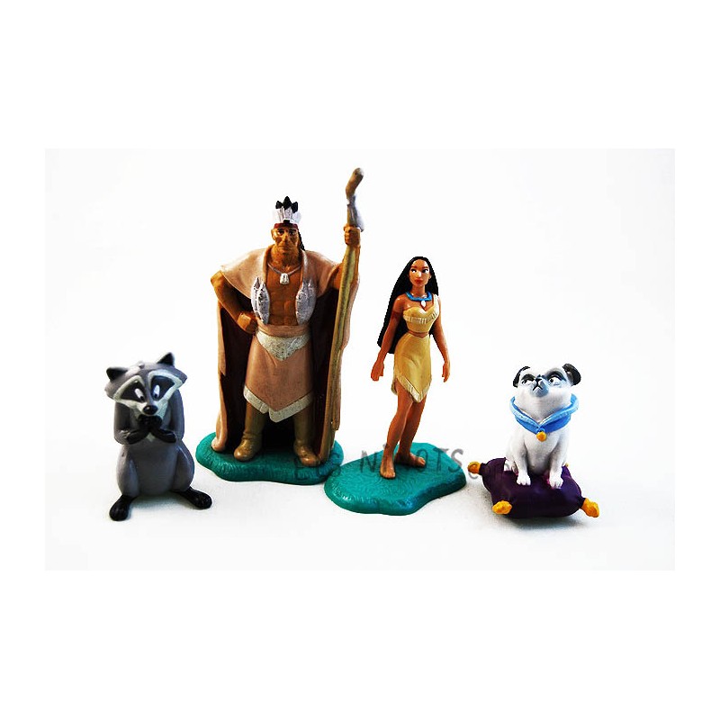 Set 4 figures Pocahontas pel·lícula Disney de la marca Applause. Resta d'estoc. Figures de col·leccionisme anys 90. Personatges: Pocahontas, Cap Powhatan, ós rentador Meeko i el gos Percy.