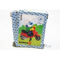 Figura Pitufo con Scooter de la colección los Pitufos de la marca Schleich, figura de coleccionismo, descatalogado.