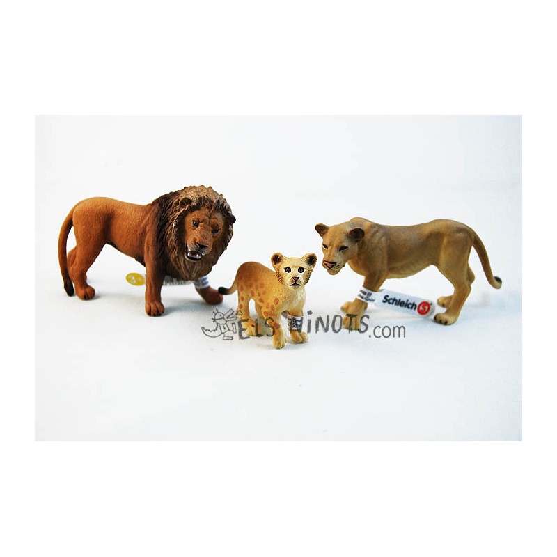 Pack de 3 figuras de la colección Wild Life de la marca Schleich, León rugiente, leona, cachorro de león. Figuras de animales con total realismo