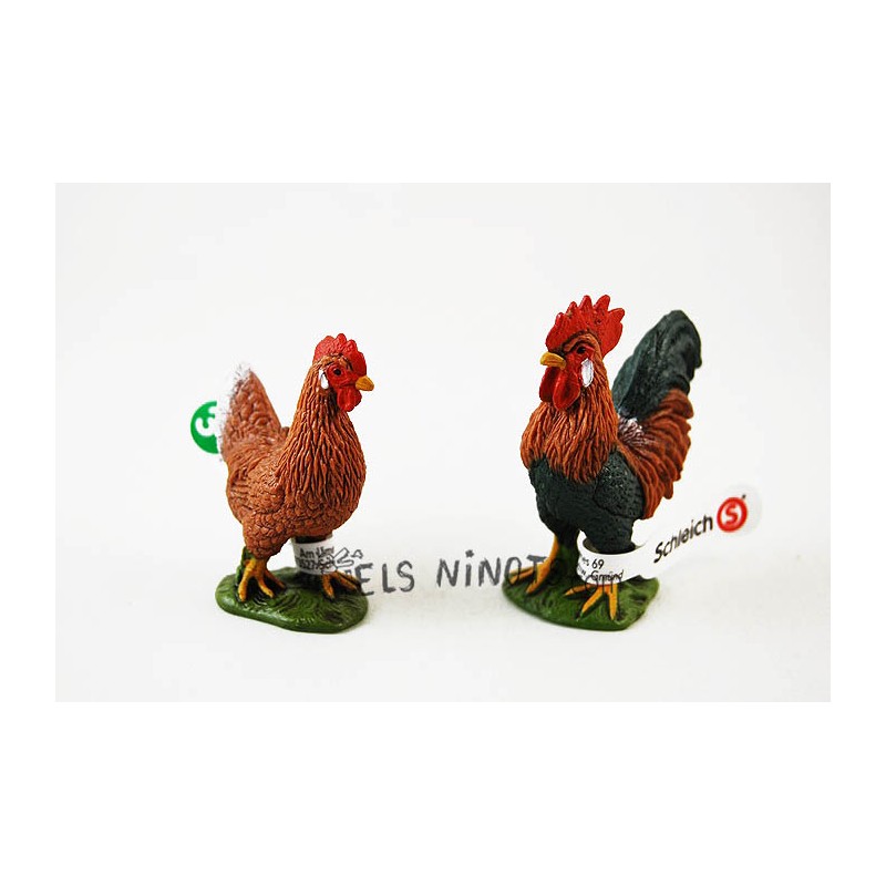 Pack 2 figuras colección el Mund de la Granja de la marca Schleich, Gallo y Gallina última edición.