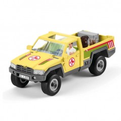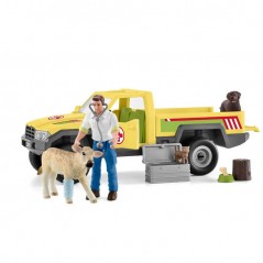 Contiene : 1 camioneta, 1 veterinario, 1 ternerito, 1 labrador Retriever hembra, 1 gatito, 1 caja de aluminio, 1 estetoscopio, 1 vendaje, 1 cuenco, 1 hueso, 1 tronco de árbol, 1 hoja de pegatinas.