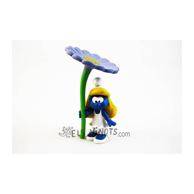 Figura de la colección Los Pitufos 2021 de la marca Schleich, Pitufina con flor última edición.