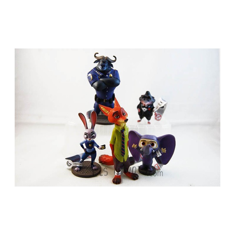 Set 5 figuras colección de Zootropolis de la marca Bullyland con los personajes siguientes: Nick Wilde, Judy Hopps, Ele-Finnick, Jefe Bongo y Mr. Big.