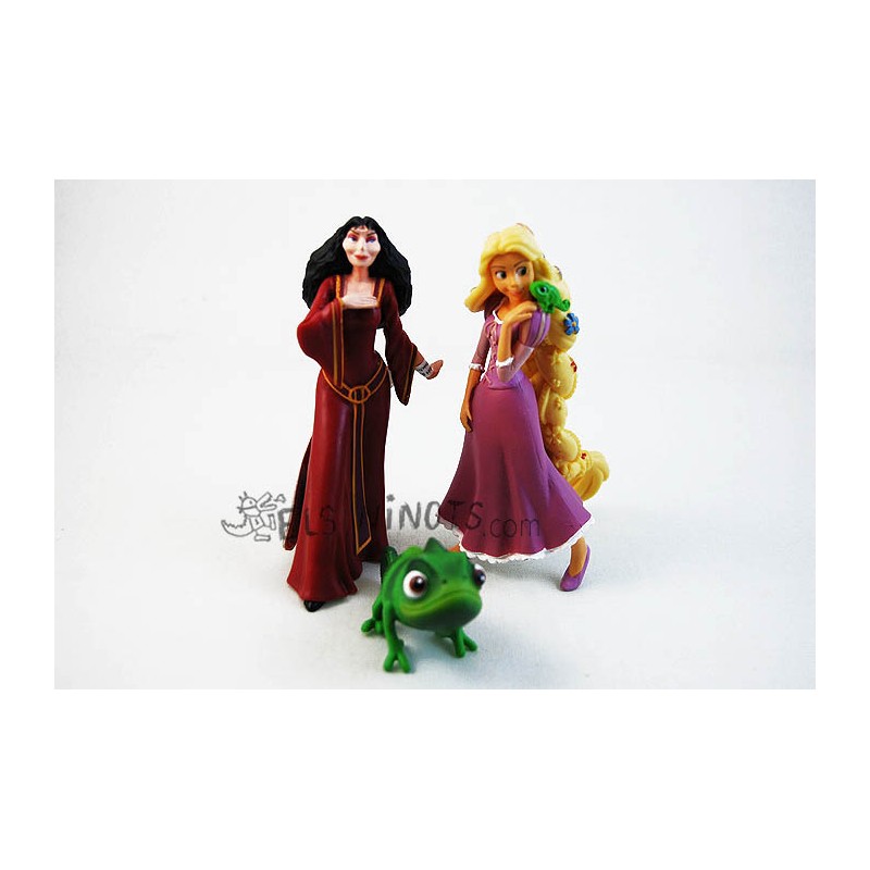 Pack 3 figurines collection Raiponce marque Bullyland avec les personnages suivants: Raiponce, Pascal et Mère Gothell.