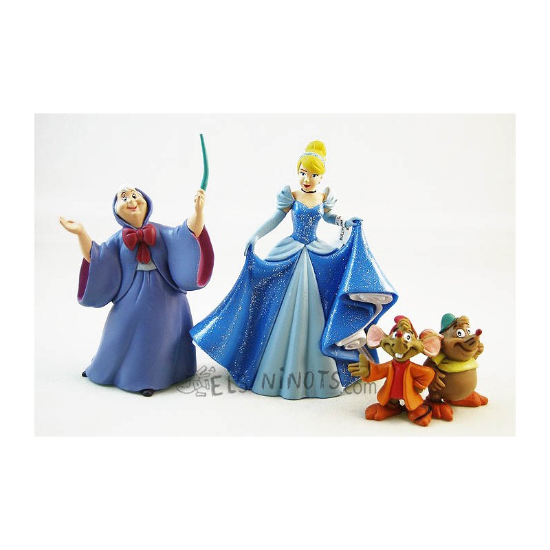 Pack 3 figurines collection Centdrillon marque Bullyland dernière édition, avec les personnages suivants: Cendrillon, Bonne fée, Gus et Jack les souris.