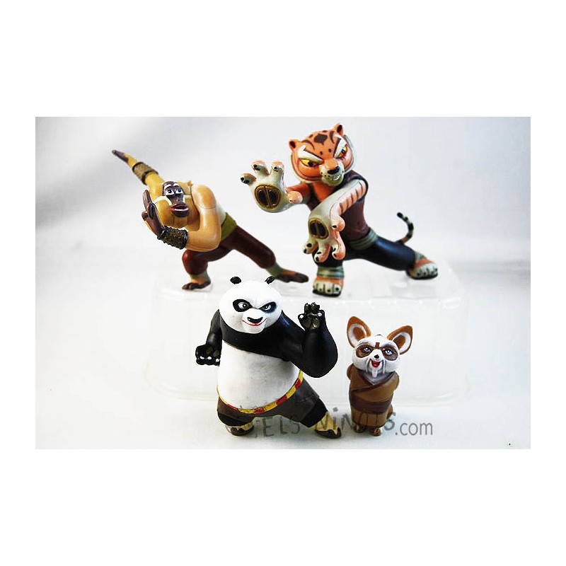Pack de 4 figurines de la collection Kung Fu Panda de la marque Marukatsu avec les personnages suivants : Po, Shifu, Singe et Tigresse