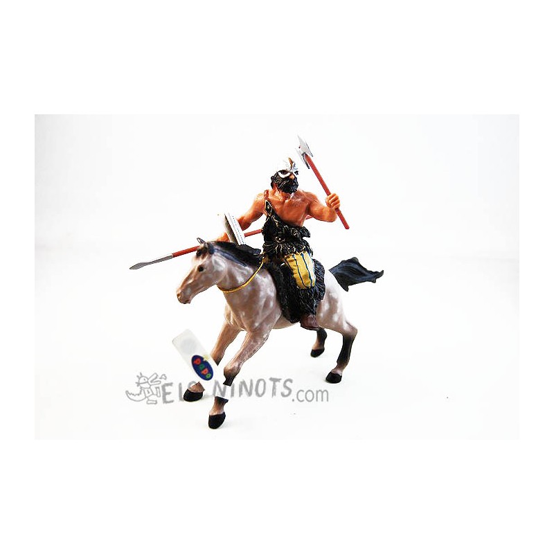 Figurine barbare double hache et lance avec cheval de la collection Historique de la marque Papo , figurine hors catalogue, reste du stock.
