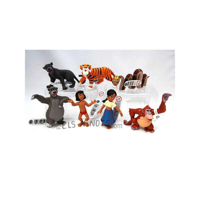 Pack collection Le livre de la Jungle marque bullyland avec les personnages suivant: Mowgli, Shanti, Baghira, Baloo, Shere Khan, Rey Louie et Kaa.